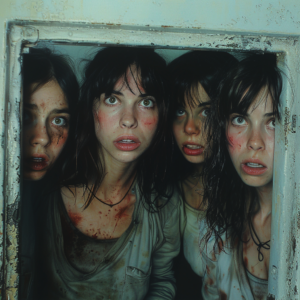 Lily was stunned for a moment, then looked at herself on the window. When she saw the terrifying lines, she screamed in madness.