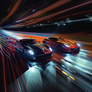 But suddenly, a change occurred! The white car suddenly swerved sharply to the left, so fast that he almost hit the guardrail himself.